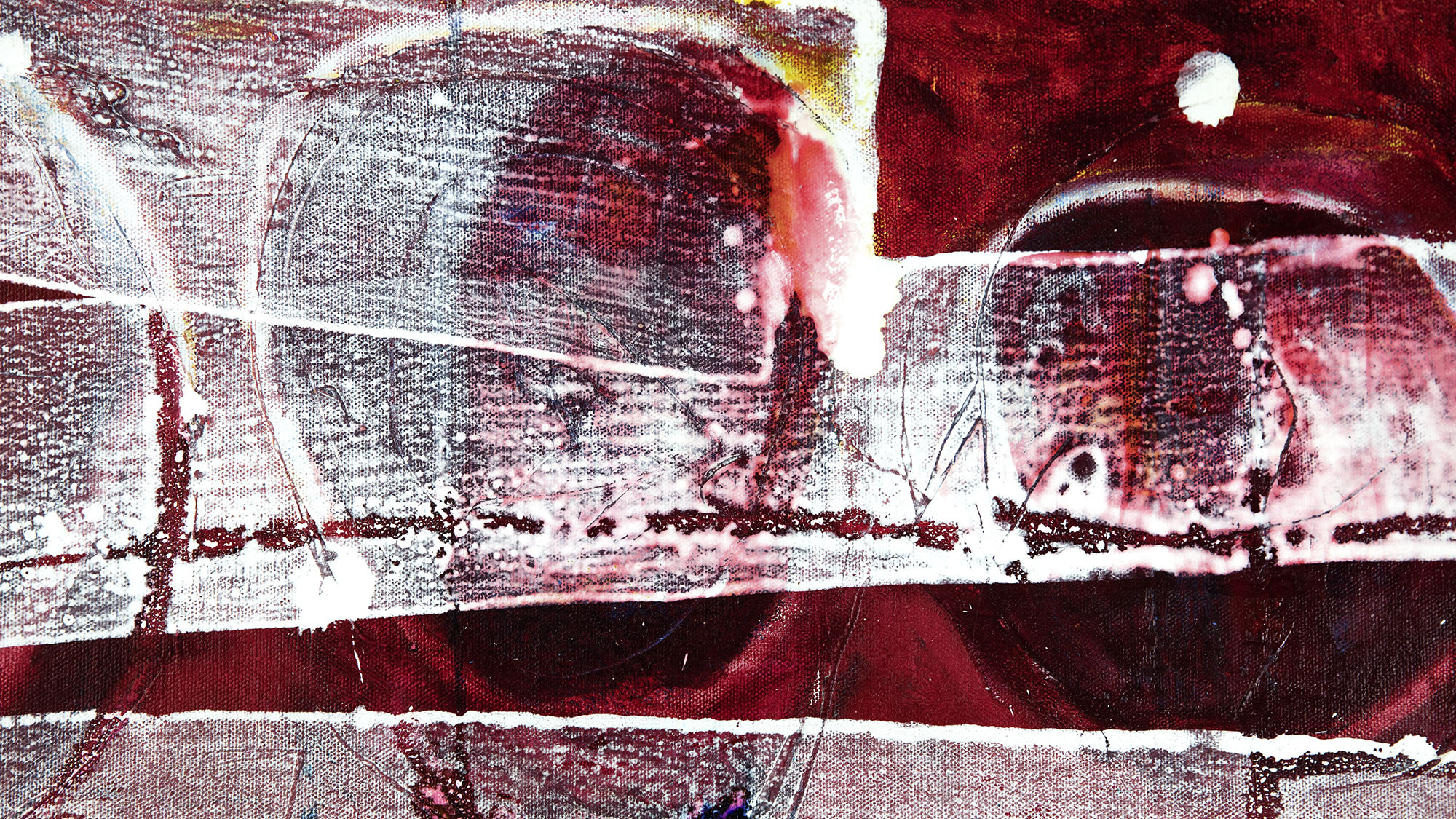 Tracks Imbricating: Malerische Früchte glänzen fruchtig hinter dynamischen Farbbahnen in rot, weiss.