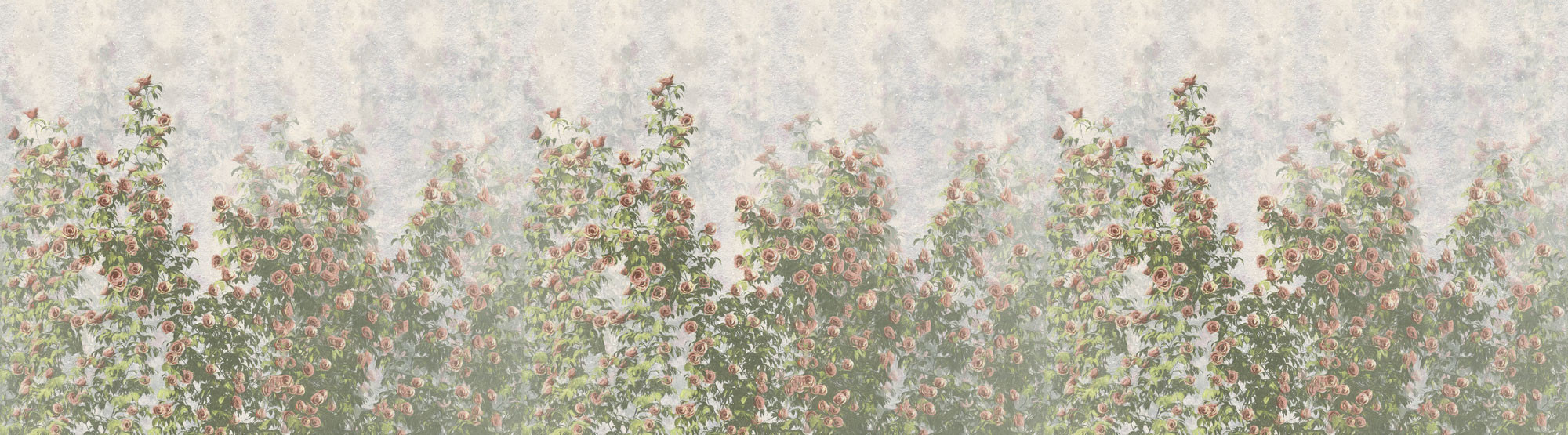 Your heart will instantly fill with joy! This romantic floral mural featuring a picturesque motif of hedge roses in pastel pink adds some trendy vintage charm to your home. The flowers climb up the wall towards the light blue sky, which nestles against the rest of the wall like a watercolour painting.