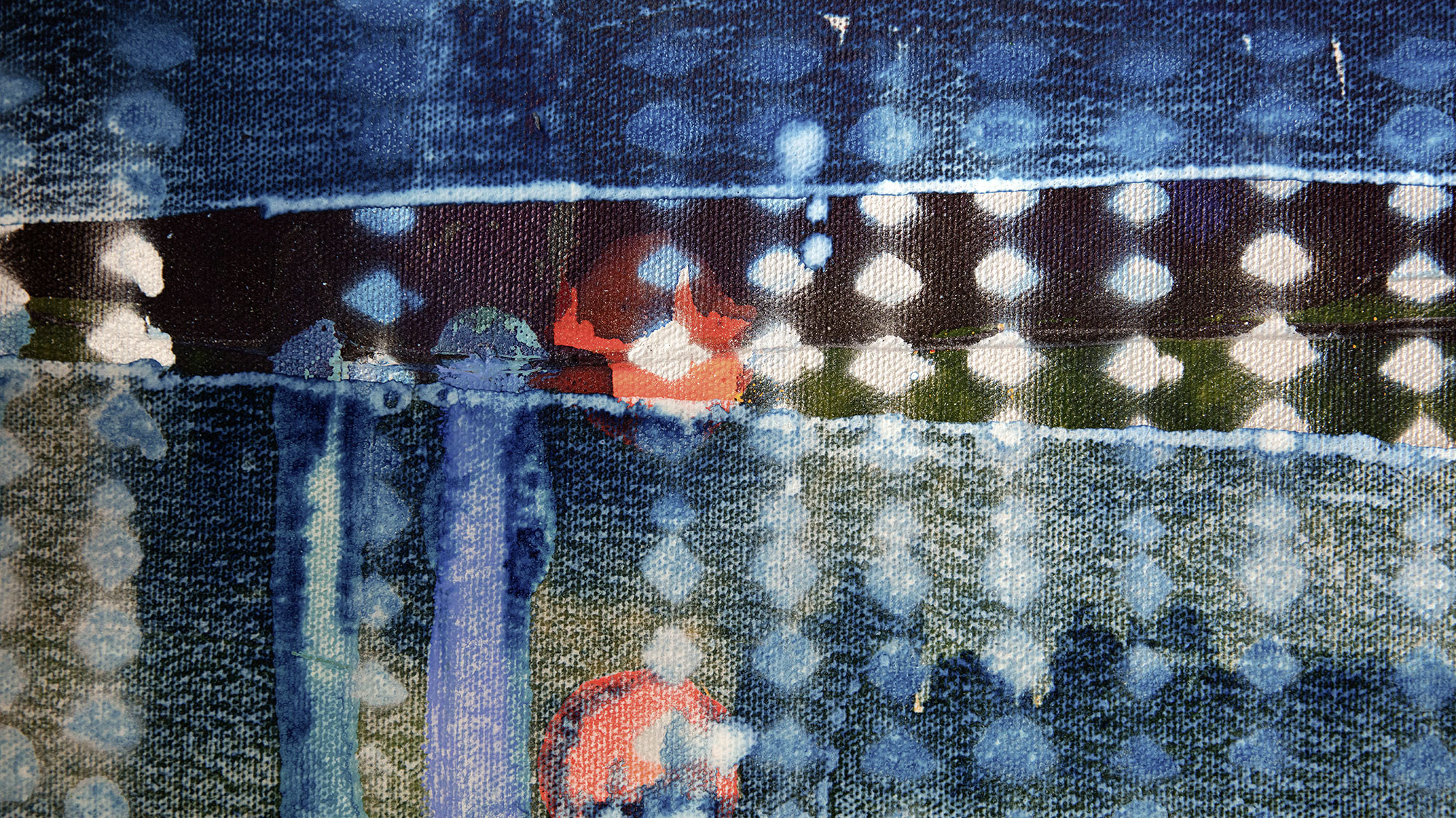 Zigzag Spangling: Perlengleich tröpfeln kleine Rauten auf malerische Schattenbahnen in blau, rot.